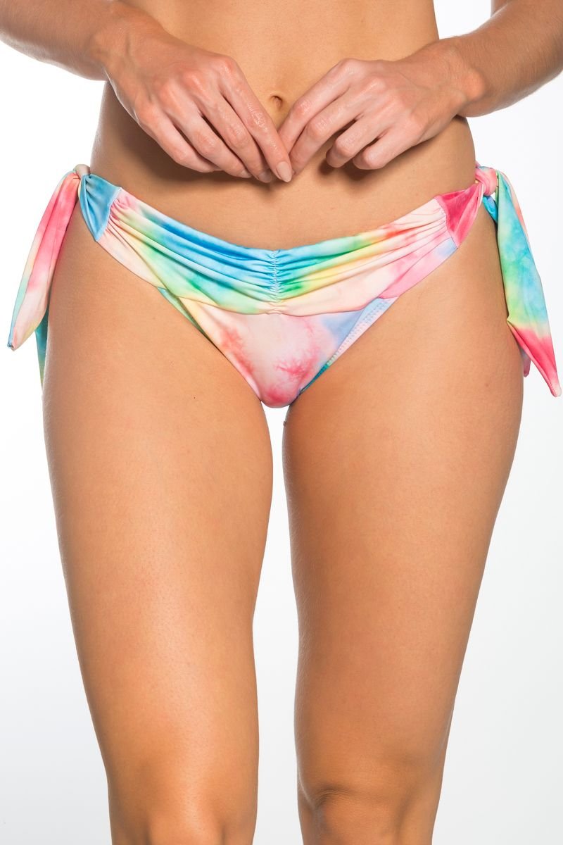 Detalhes da Calcinha Biquíni Drapeada de Amarrar Tie Dye: