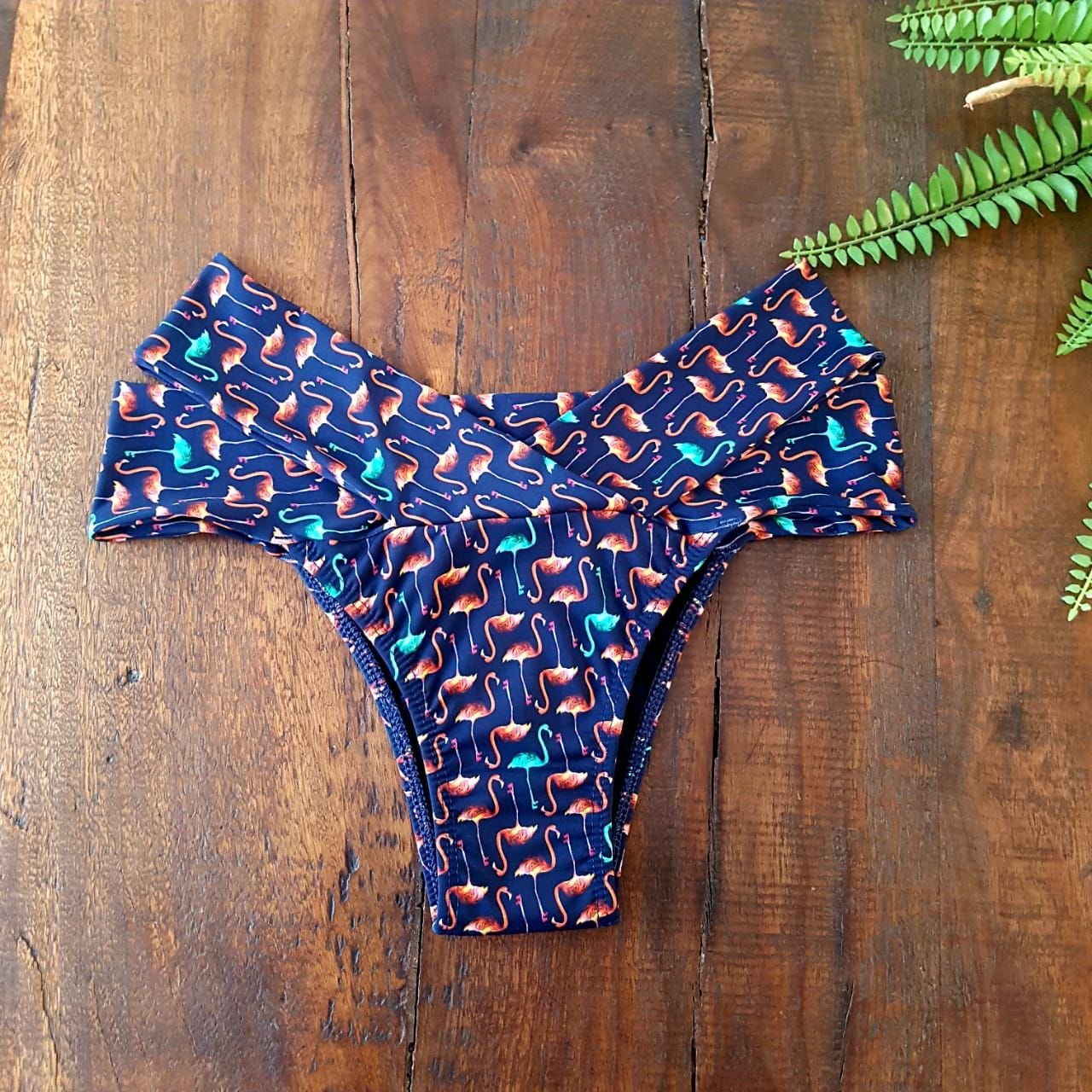 Detalhes da Calcinha Biquíni Faixa Transpassada Flamingo: