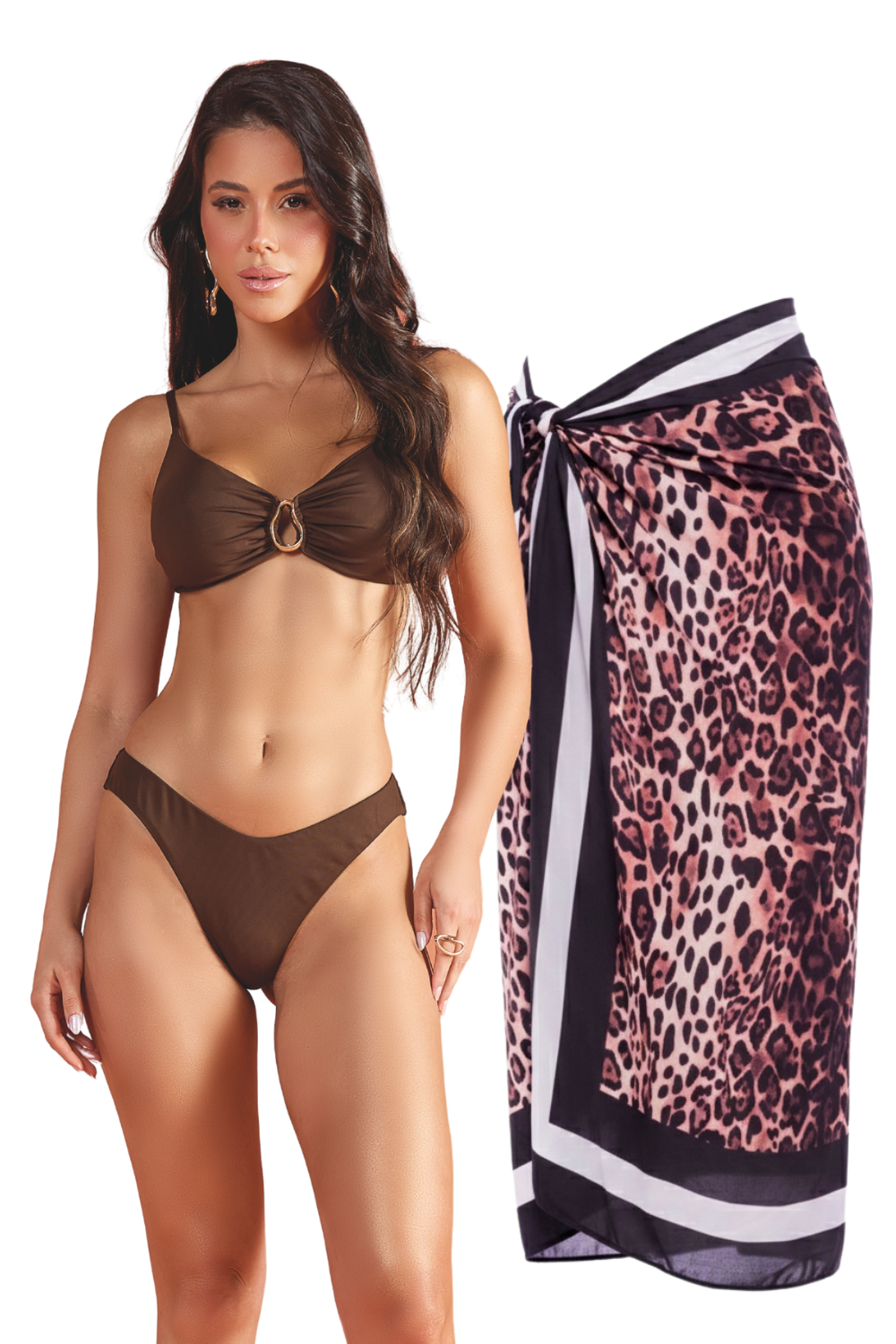 Kit Conjunto Marrom + Pareô Onça: