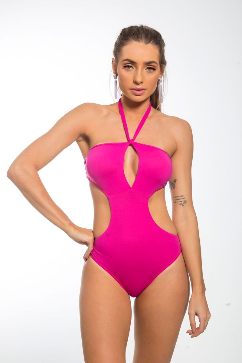 Detalhes do Maiô Engana-Mamãe Alça Cruzada Rosa Orquídea: