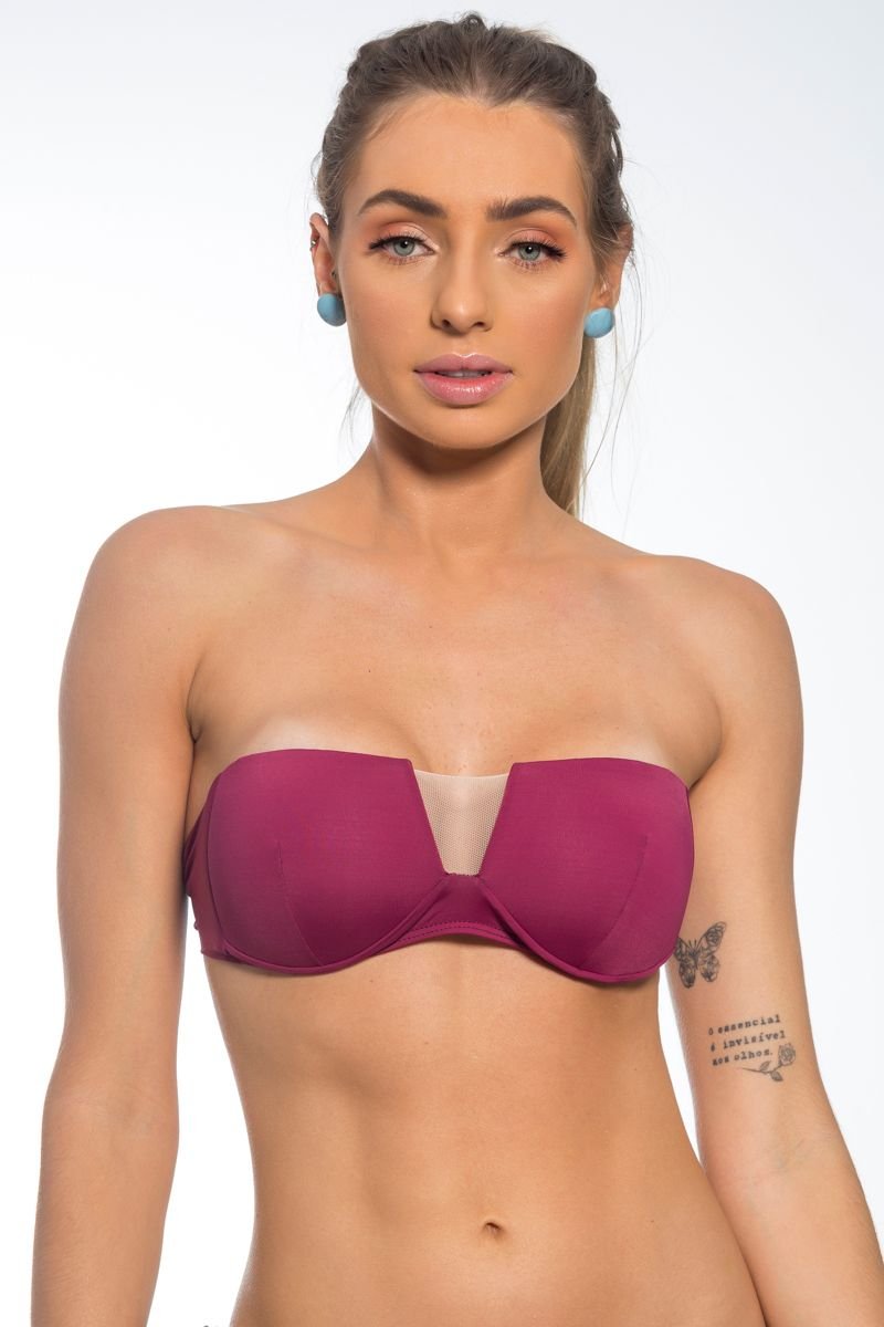 Detalhes do Top Biquíni Tomara que Caia Quadrado c/ Tule Bordô: